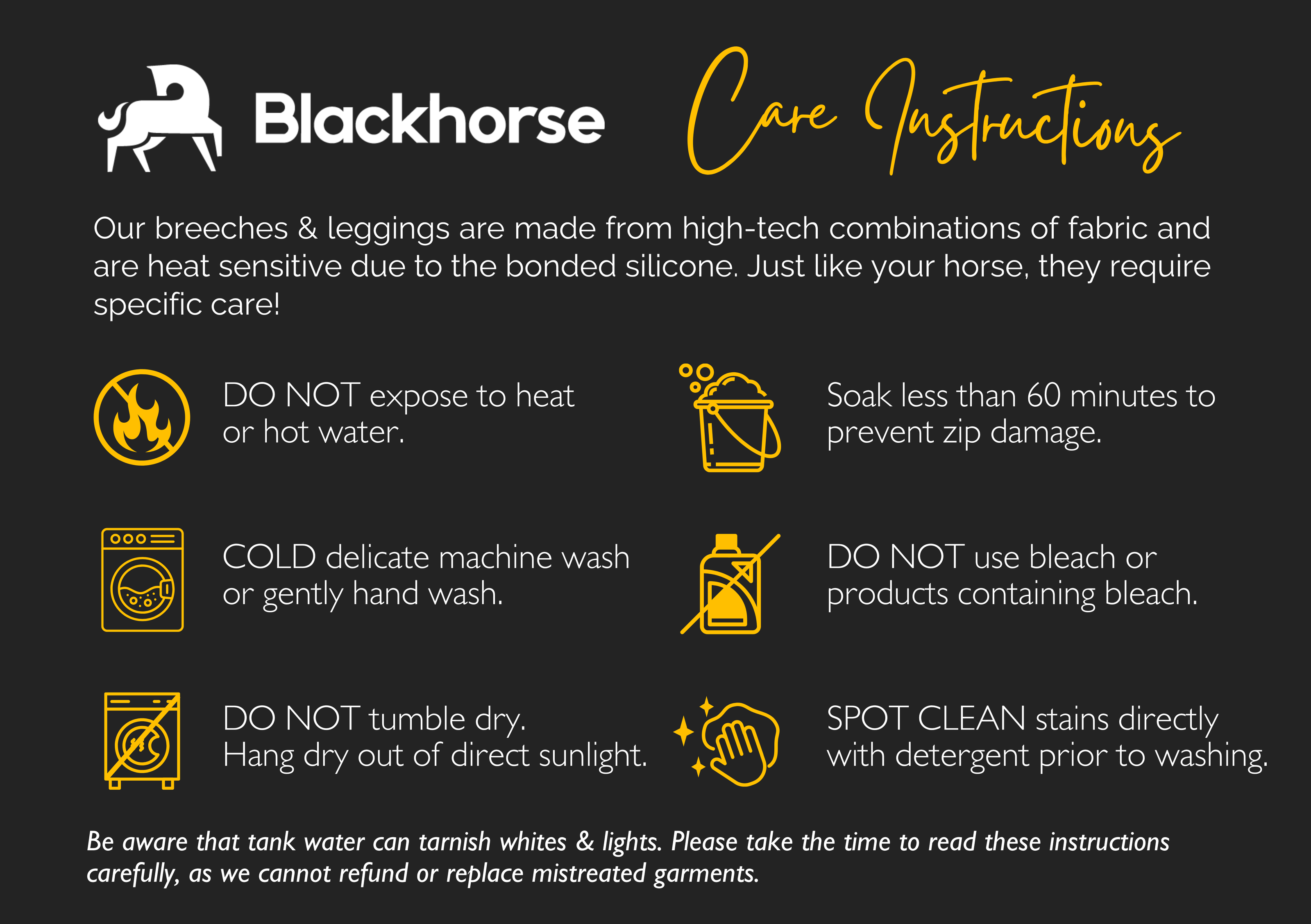 BLACKHORSE CARE INSTRUCTIONS